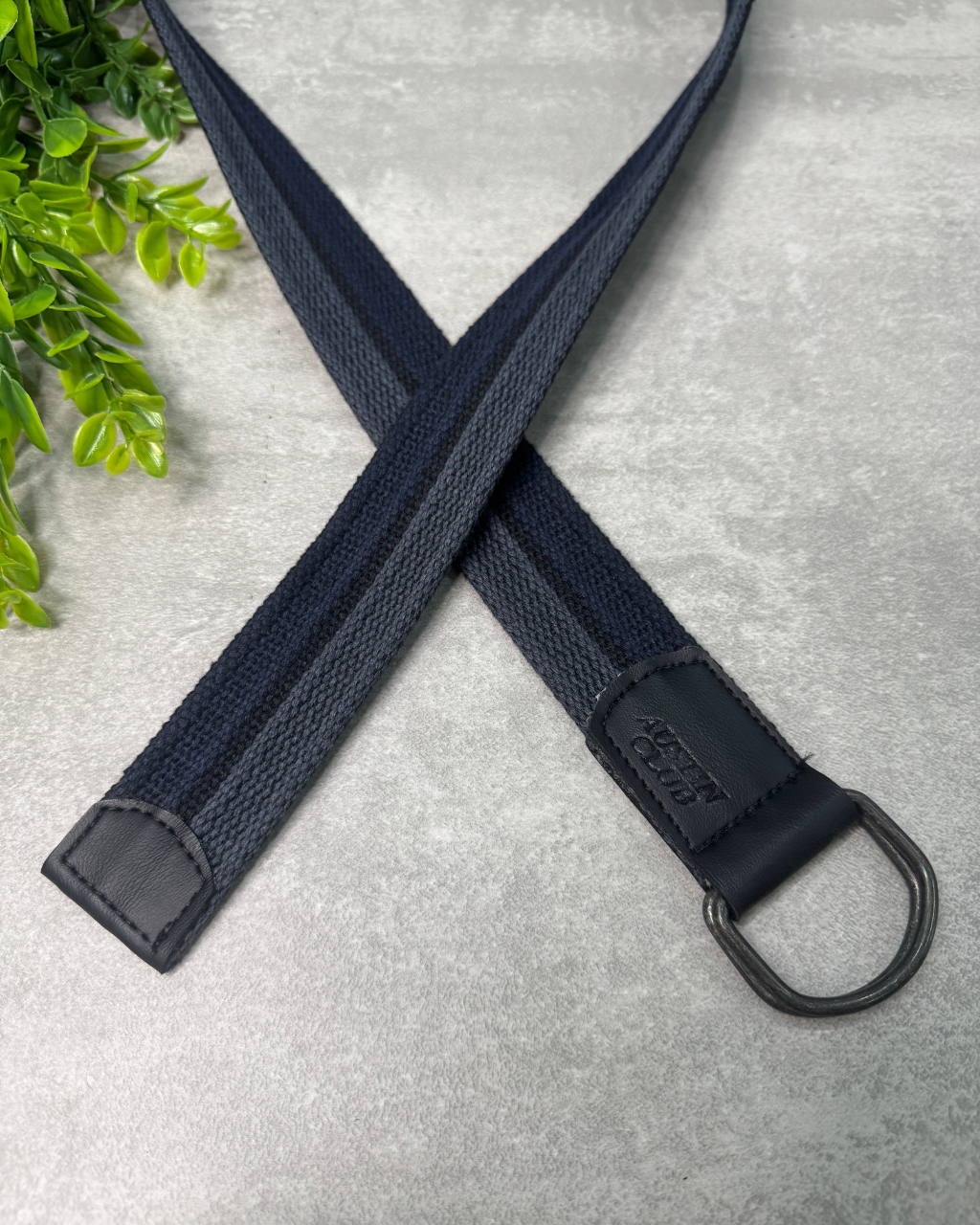 Confeccionado em tecido resistente na cor azul marinho, o modelo conta com detalhes em couro sintético nas extremidades e fivela dupla em metal grafite, que garante ajuste firme e versatilidade no uso. O design minimalista e moderno combina facilmente com jeans, sarja ou bermudas, tornando-se a escolha perfeita para looks despojados e elegantes.